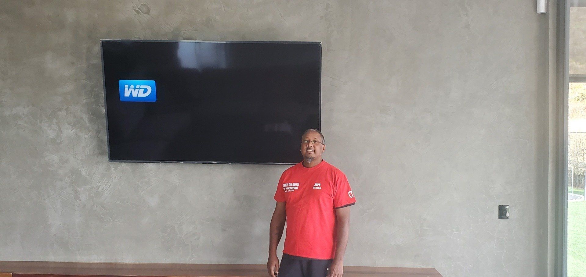 The technician will inform you of their arrival time. Once they arrive, you'll be greeted with a business card and proceed to inspect the project. Once the project is identified, the technician will set up equipment and tools to perform the tasks. The technician will show you where the TV will be located on the wall, and you're encouraged to watch the technician perform their duties, provide input and give the go ahead. The TV will be mounted and you'll be shown the TV in its final resting state for approval. If there is more work to perform, the technician will move his tools and equipment to the next location and repeat this process. Upon satisfaction of the work, you, the customer, will pay the technician for the work completed.